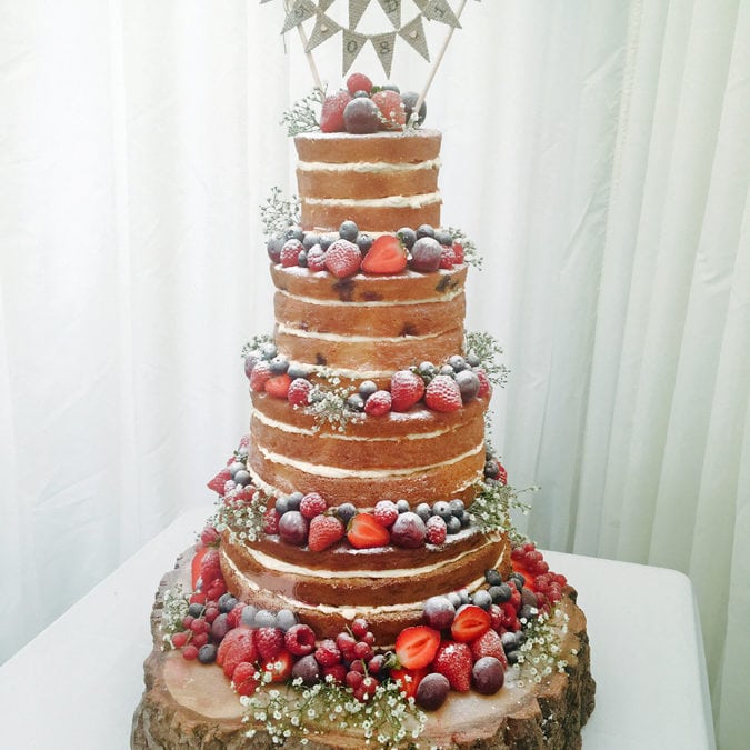 3 Tier Semi-Naked Wedding Cake, Rayleigh – The Old Parish Rooms, 27th May 2018